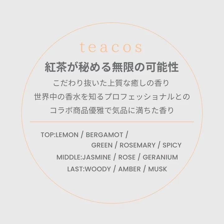 * 至福のフレグランス: プロの調香師と共同開発した、気品溢れる紅茶の香り。レモンやシトラス、ローズ、ラストに香るウッディなアンバーやムスクへの移ろいは、まるで香水を纏っているかのようです。